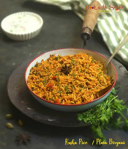 Fragrant basmati rice cooked with traditional biryani spices, without meat.
